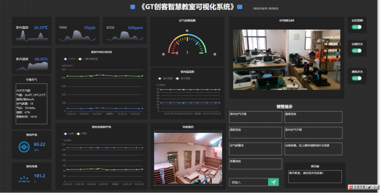2024年, 中小学创客教育课程开发与应用研究(立项号:KT24063), 人工智能, 学生作品, 提高篇, 教学案例, 物联网, 科技类, 自动检测, 行空板《GT创客智慧教室可视化系统》林镇涛 黄皓楠 GT-maker / 2024年4月30日 摘 要