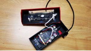 本作品以行空板为主要结构进行组装,作品主体为3D打印的盒子。在其内部有盖格计数器以及温湿度传感器等物件,实时检测周围环境,并显示在行空板上,线条随数据变化伴有波纹状起伏。在辐射超标时,会发出警告。
